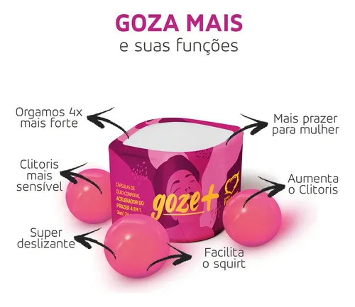 -Goze +: excita, sensibiliza, esquenta, lubrifica.