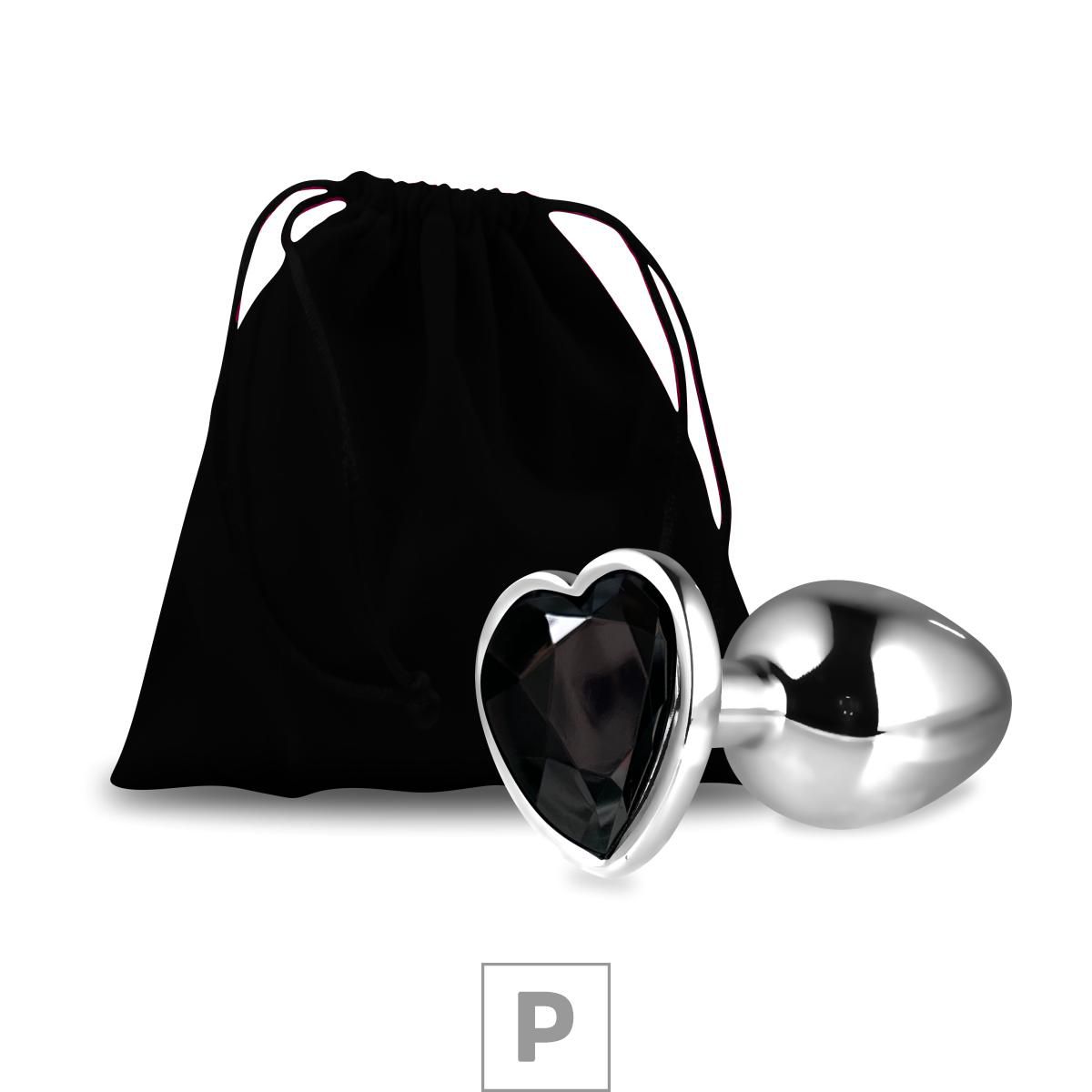 Plug de Metal P Com Pedra Formato de Coração 6cm SI – Pedra Preta