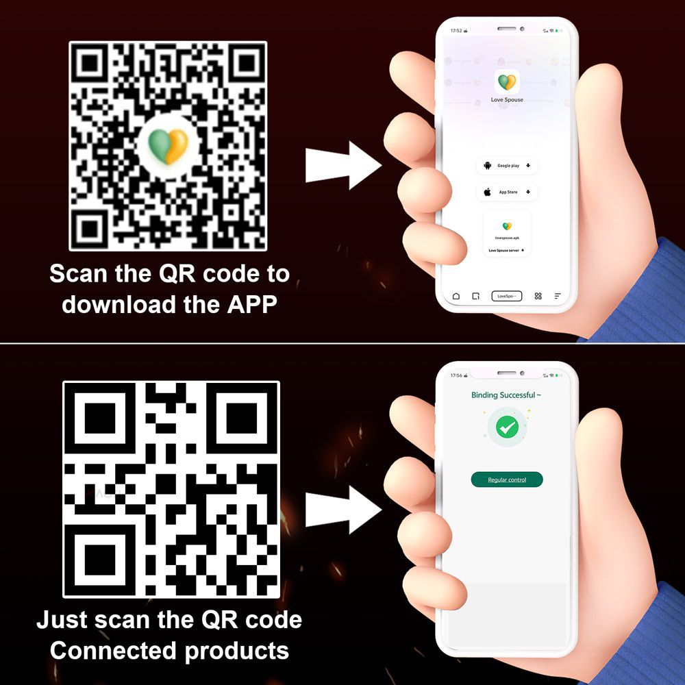 MODO DE EMPLEO: Presione el botón ON/OFF por hasta 3 segundos para encender el vibrador / Instale la aplicación a través del Código QR y controle los modos de vibración, si es necesario, cada pulsación del botón ON/OFF también cambia la vibración / para apagarlo, presione el botón ON/OFF por hasta 3 segundos.